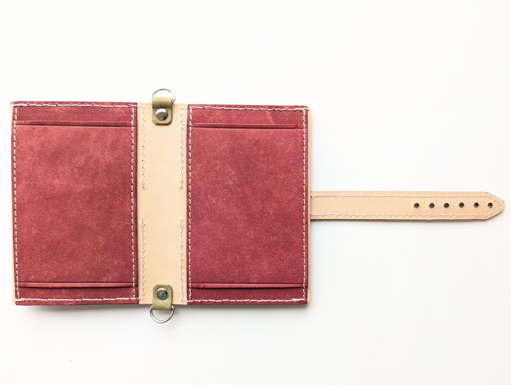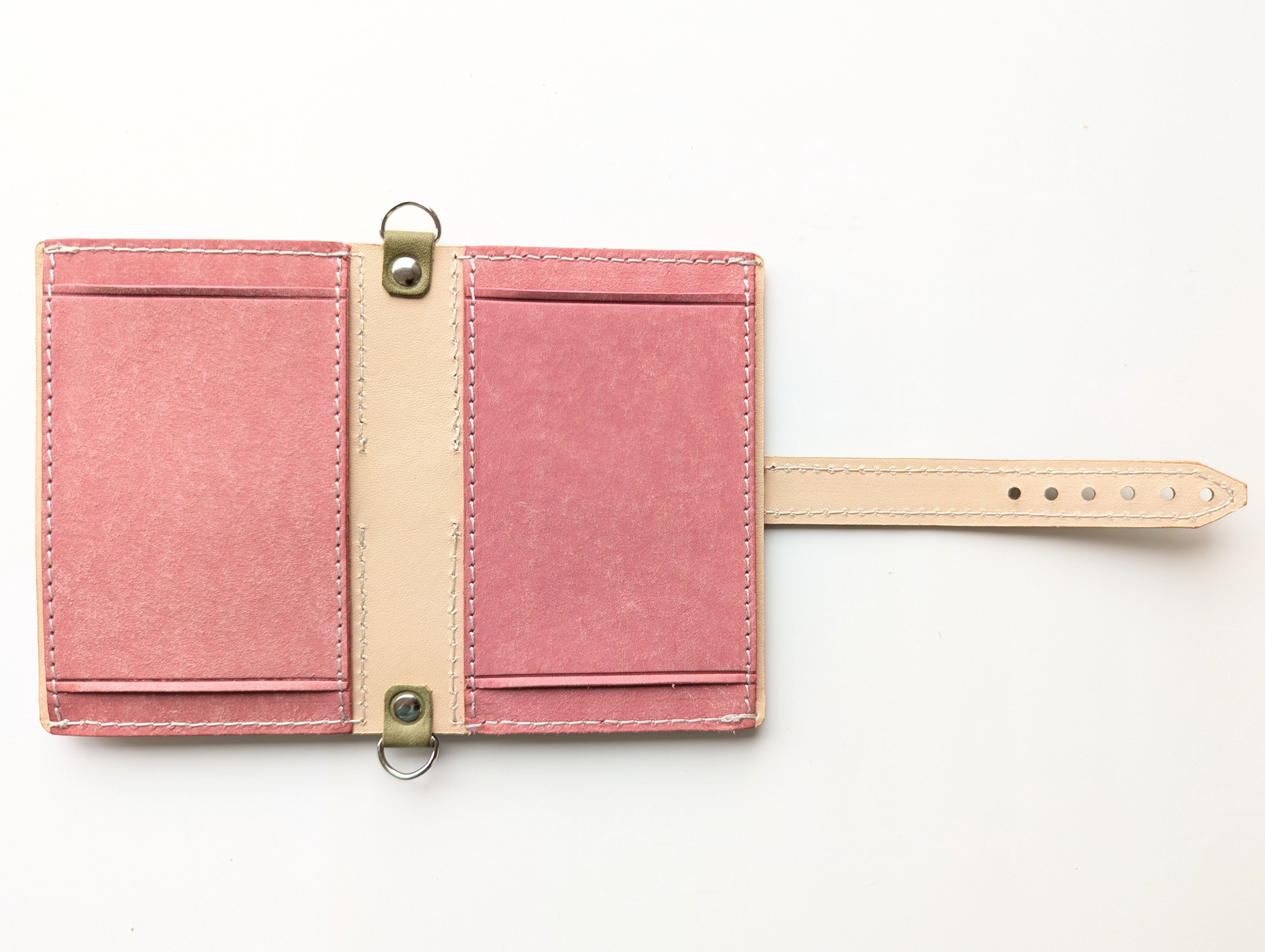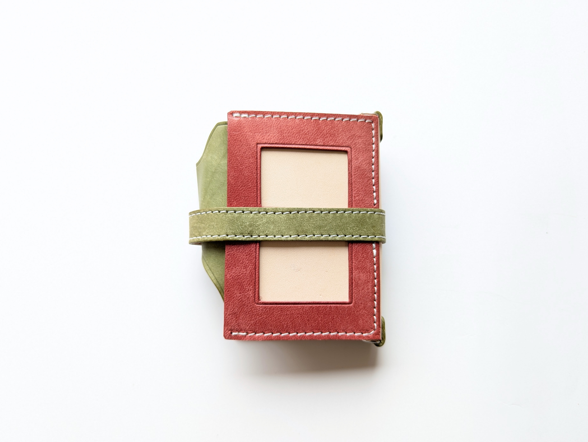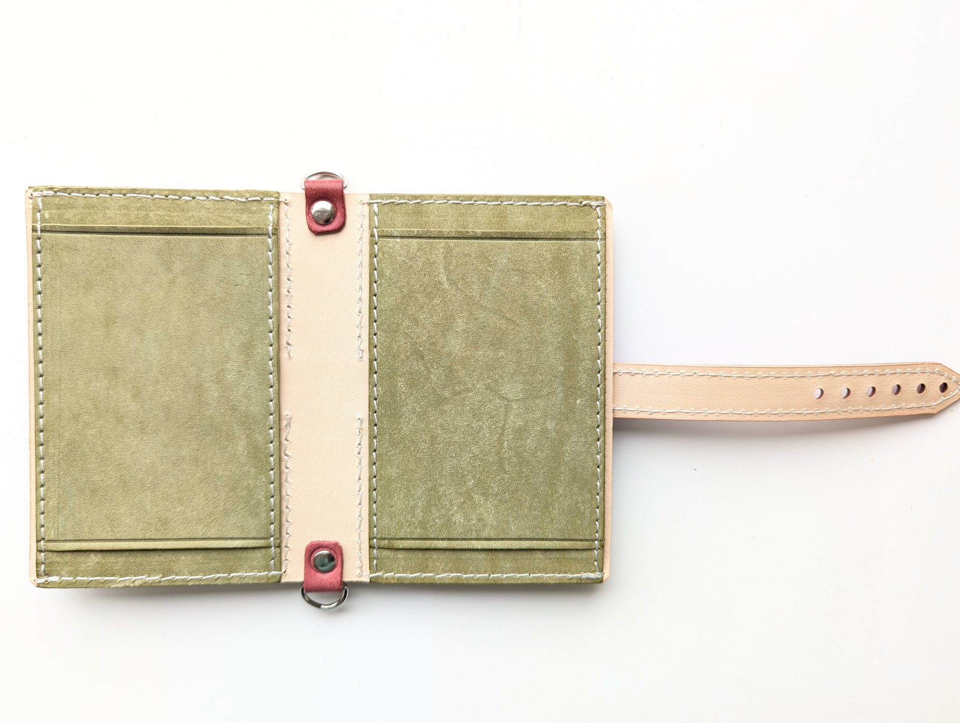 表面カラーと内面ポケット部分はイタリアのレザー「マヤレザー」を使用
