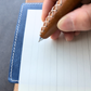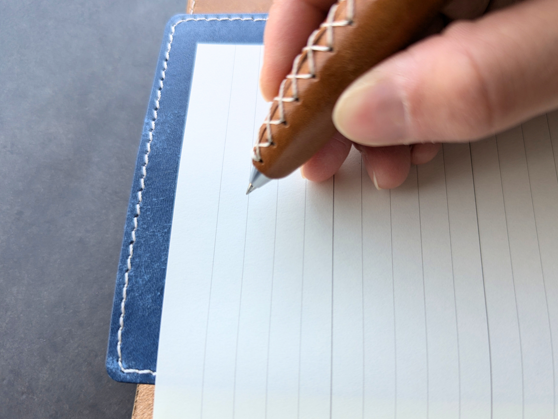 より滑らかに書けるのが生成り革です。筆圧によっては、筆跡が残ることが有ります。(5分8秒頃~)