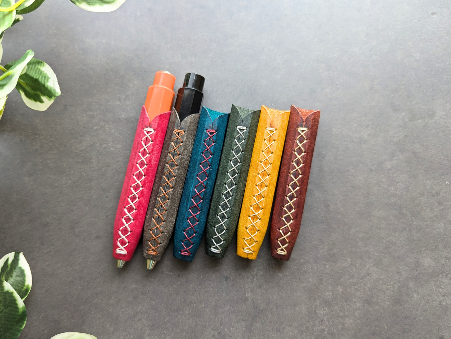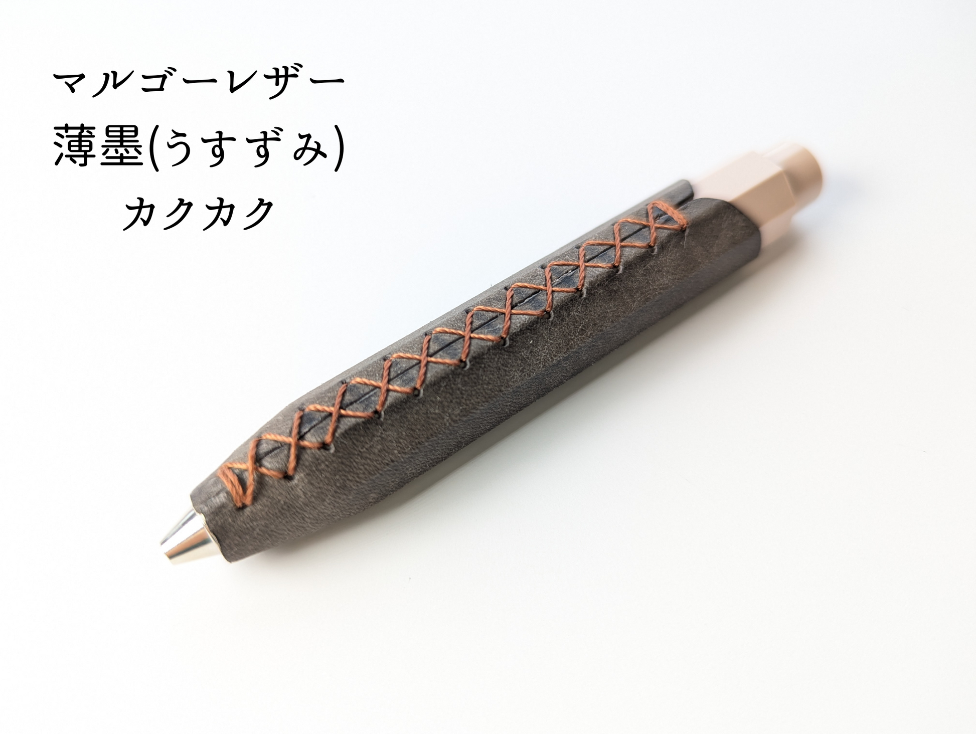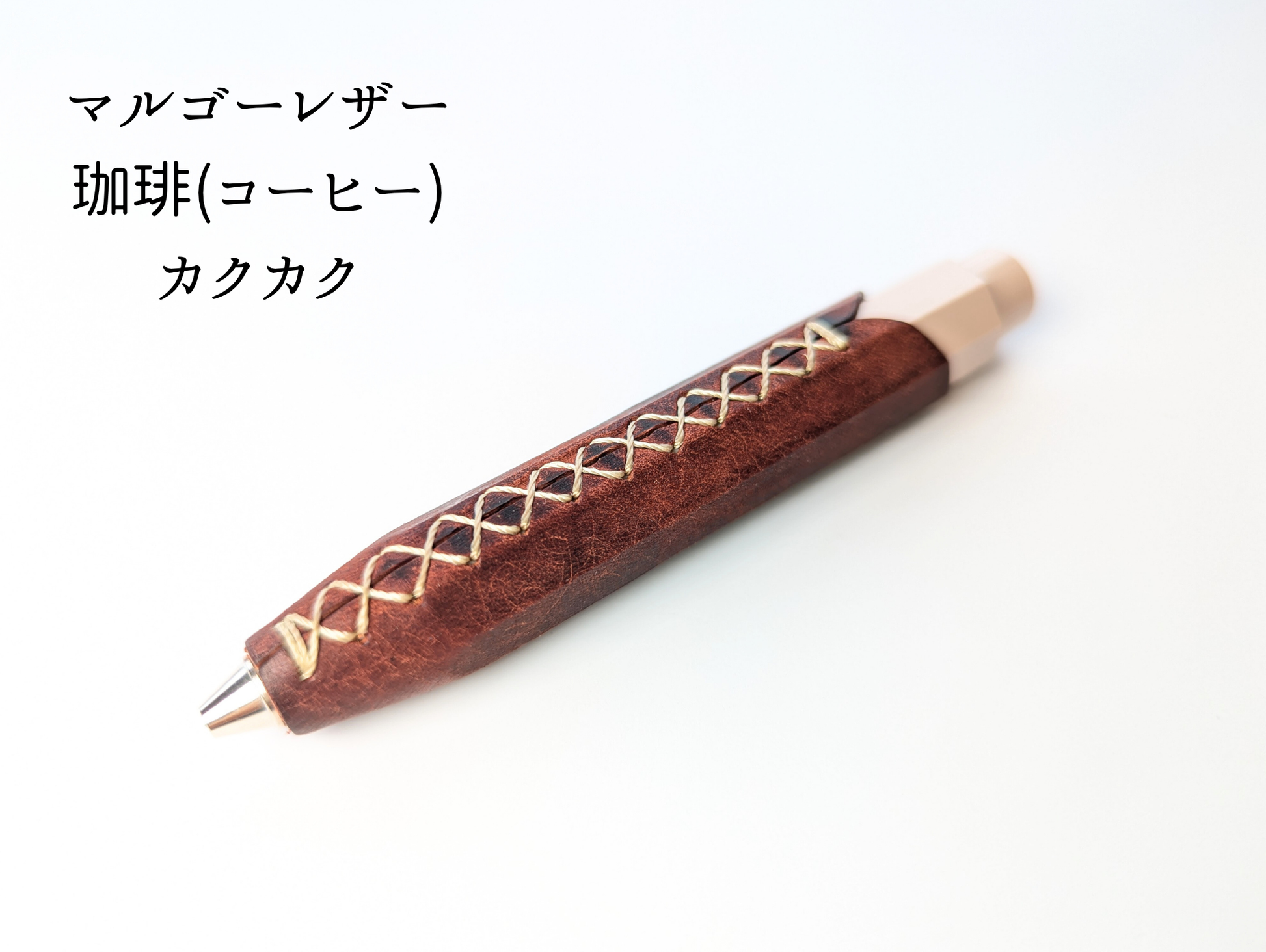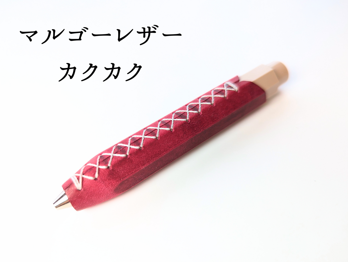 ボルドー色のカヴェコスポーツのシャーペンに色味もサイズもピッタリ!六角形で持ちやすくはあったのですが、長時間使うと角が指に当たって気になっていところ、こちらの商品で指への当たりが柔らかくなり、滑りにくくなって、さらに書き心地が良くなりました。別の皮の試したくなってロロマレザーのカクカクも注文してしまいました。