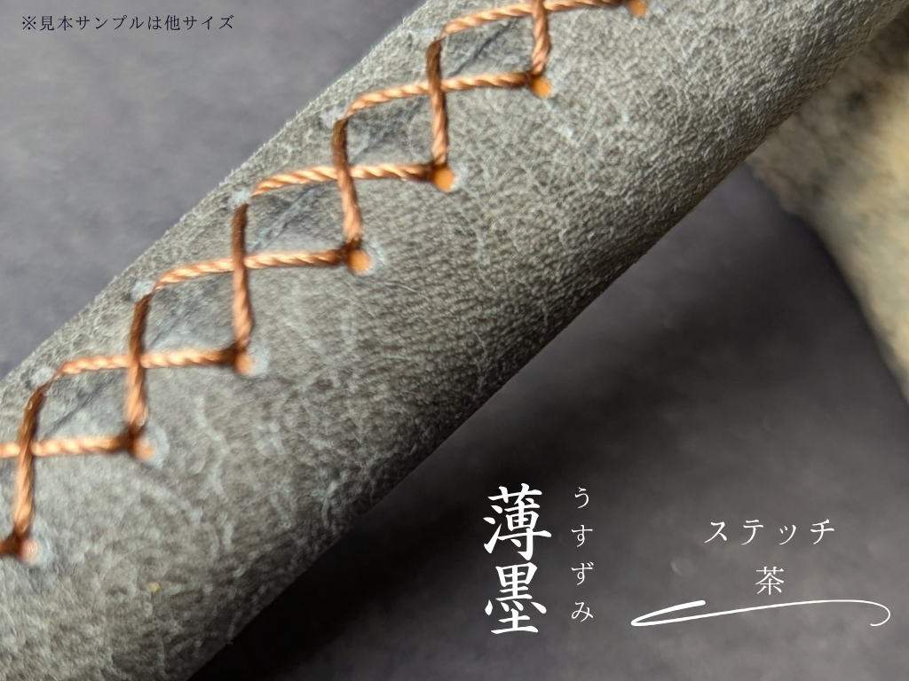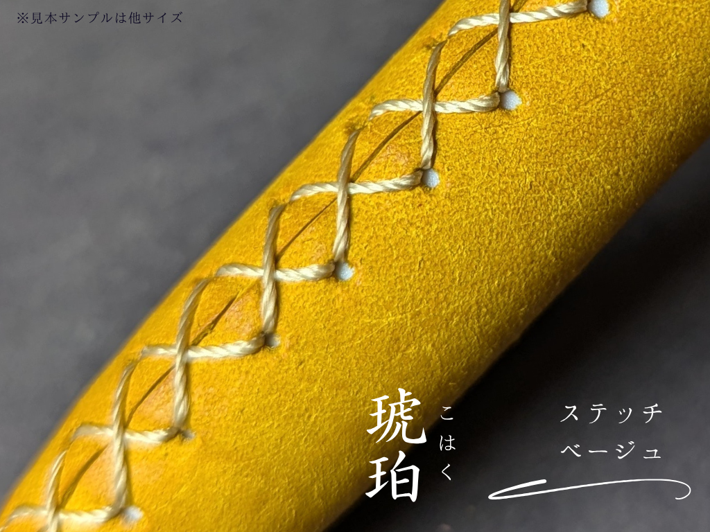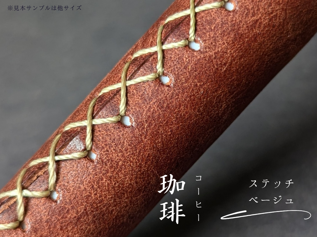 琥珀のように輝く艶やかな経年変化を楽しんでいただきたく、ステッチは主張を抑えた同系色で合わせました。