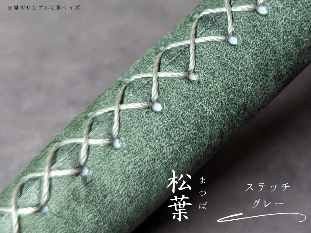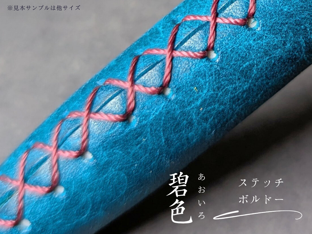 光が差し込んだ深海のような緑がかった碧色には、ボルドーのステッチを合わせました。粋な配色がお洒落です。